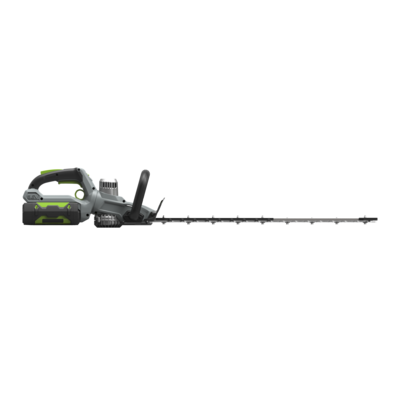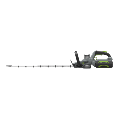 A well-balanced design for more comfortable operation, the HT6500E hedge trimmer features a long length, dual knife-edge, laser-cut diamond ground blade for precise clean cutting. The two-speed selector lets you choose the right speed for every task, coupled with large cutting capacity, you can get to work on larger hedges with thicker branches and stems. Blade-tip protection prevents the blades becoming damaged by fences and walls, and vice versa. For safer working, the safety blade guard helps to prevent injuries in action, while the electric brake stops the blades when the trigger is released. The rotating rear handle allows you to adjust the trimmer to an angle which is more comfortable depending on whether you are cutting horizontally or vertically. It’s able to rotate 45° and 90° left and right. A robust metal alloy brushless motor housing and gearbox will smoothly and quietly give you all the power you need, without the vibration, emissions and noise of a petrol engine. Powered by the petrol-matching ARC Lithium™ 56V battery, a single charge delivers such impressive run time that you’ll be amazed at how much hedge you can cut. Simply click in whichever battery you need from our range, and you’re ready to go.
